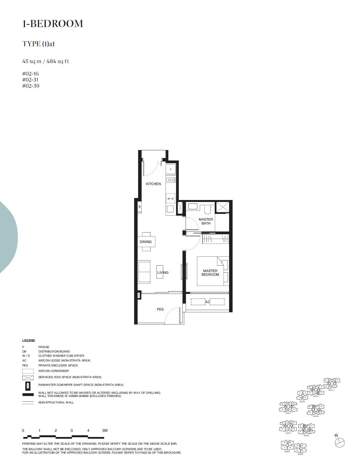 | 1 BEDROOM | (1)a1 | 484 | 3 | - |