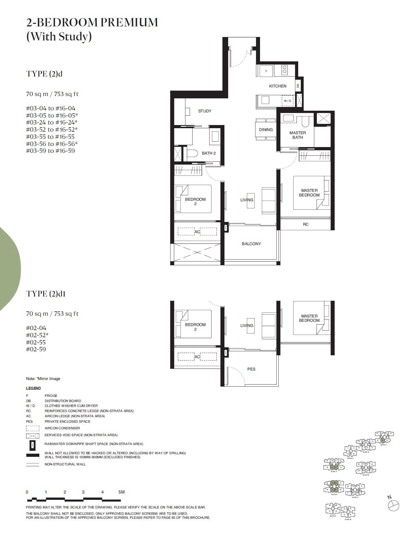 | 2 BEDROOM PREMIUM (With Study) | (2)d | 753 | 98 | - |