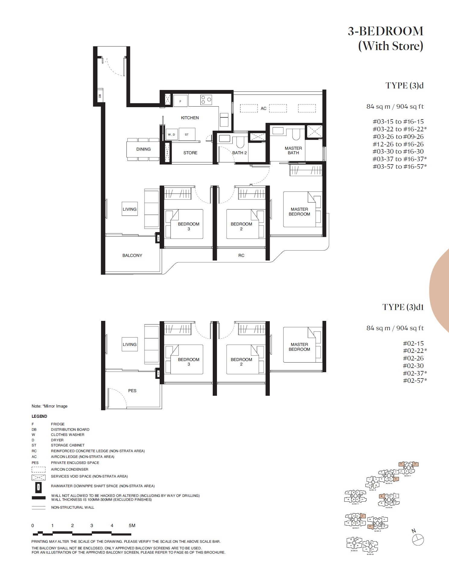 | 3 BEDROOM (With Store) | (3)d | 904 | 82 | - |