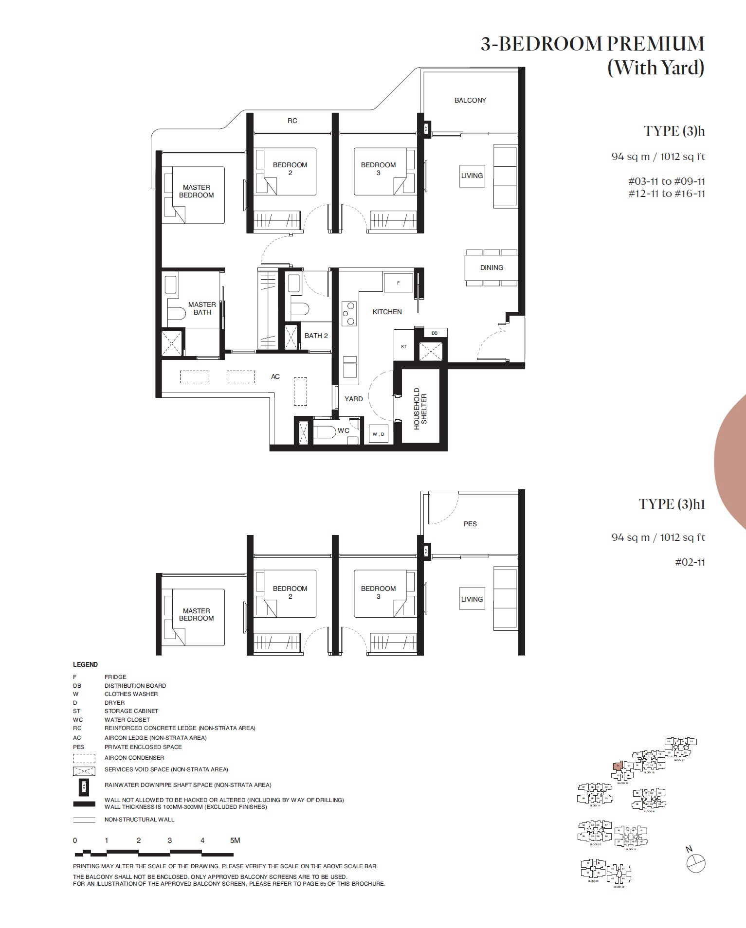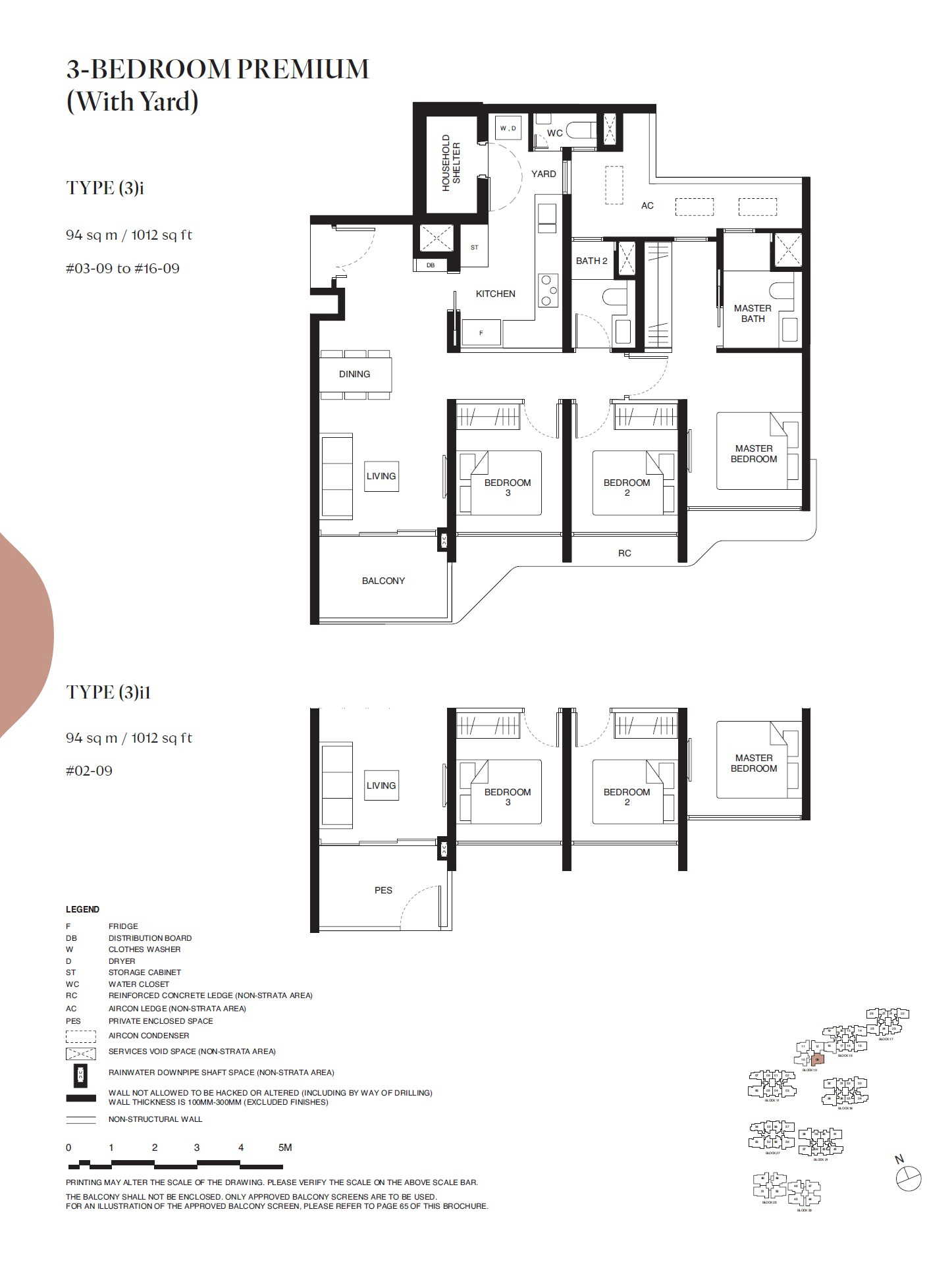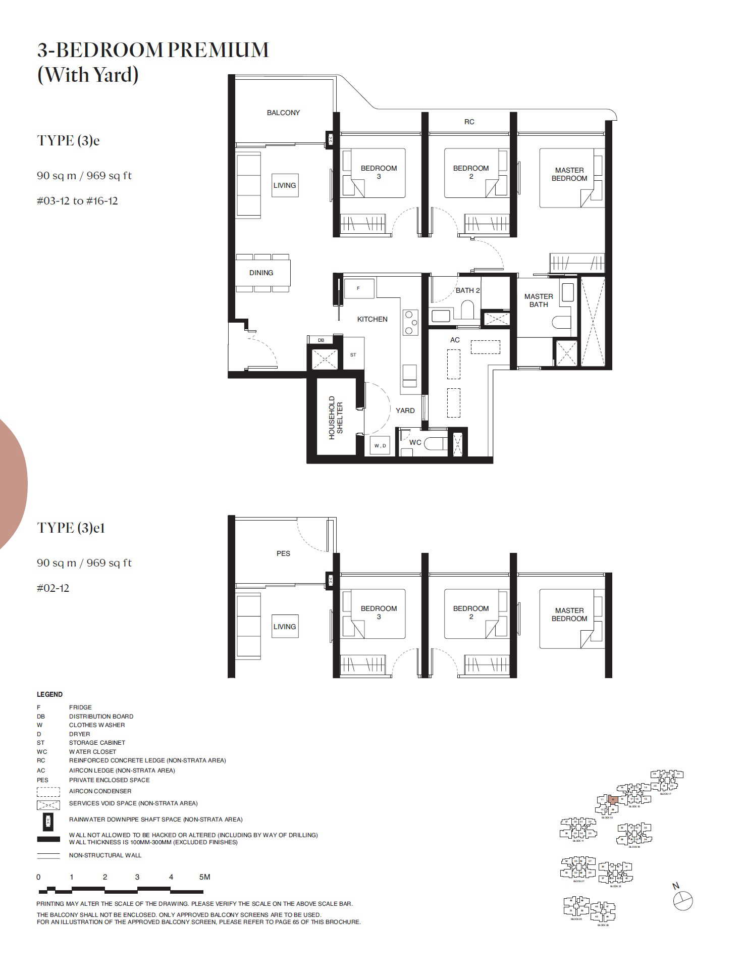 | 3 BEDROOM PREMIUM (With Yard) | (3)e | 969 | 14 | - |