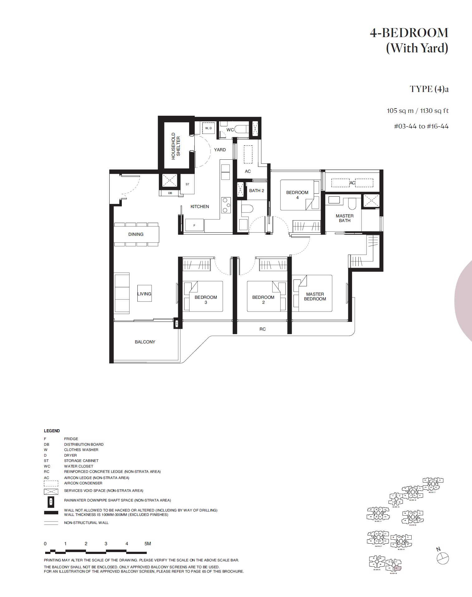 | 4 BEDROOM (With Yard) | (4)a | 1,130 | 14 | - |