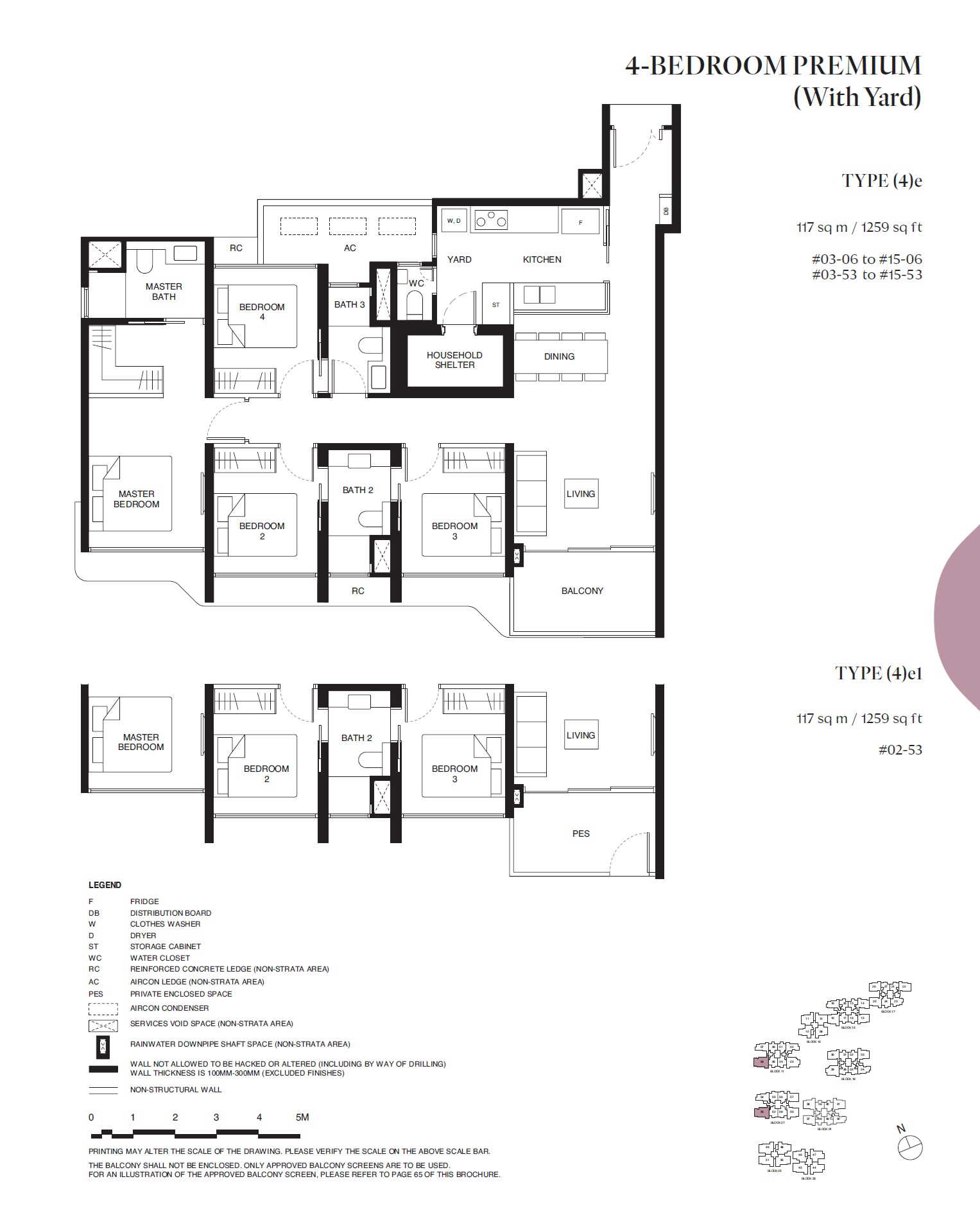 | 4 BEDROOM PREMIUM (With Yard) | (4)e | 1,259 | 26 | - |